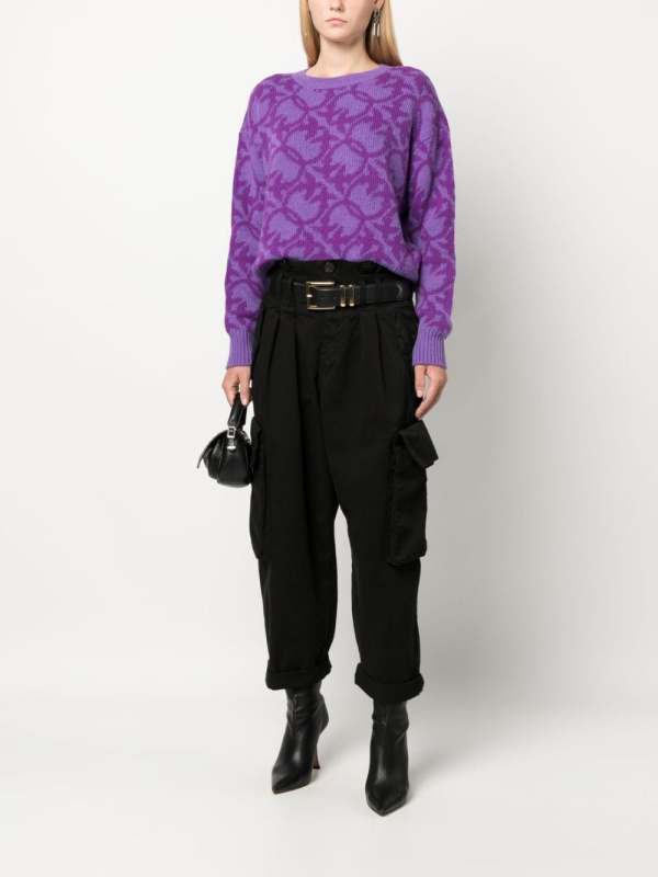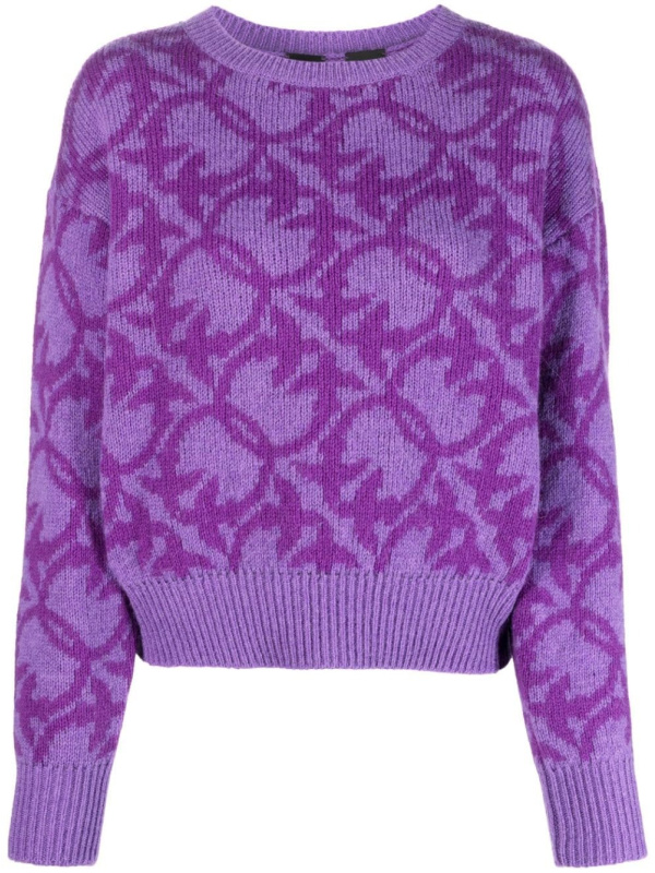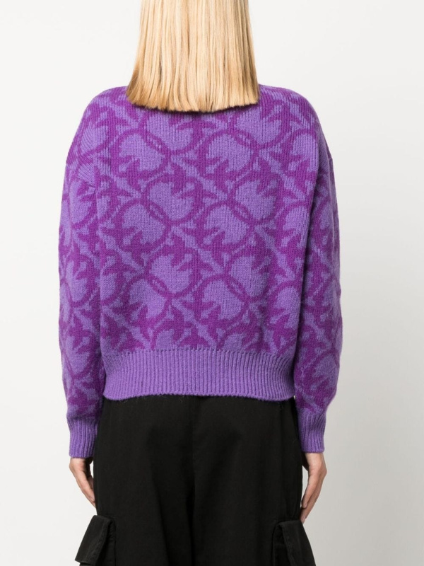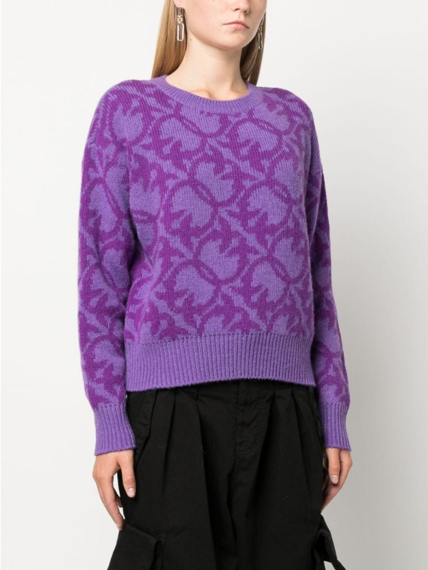 Ljubičasti PINKO džemper od mješavine vune s uzorkom monograma