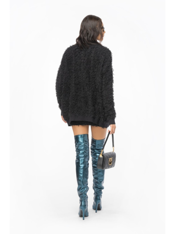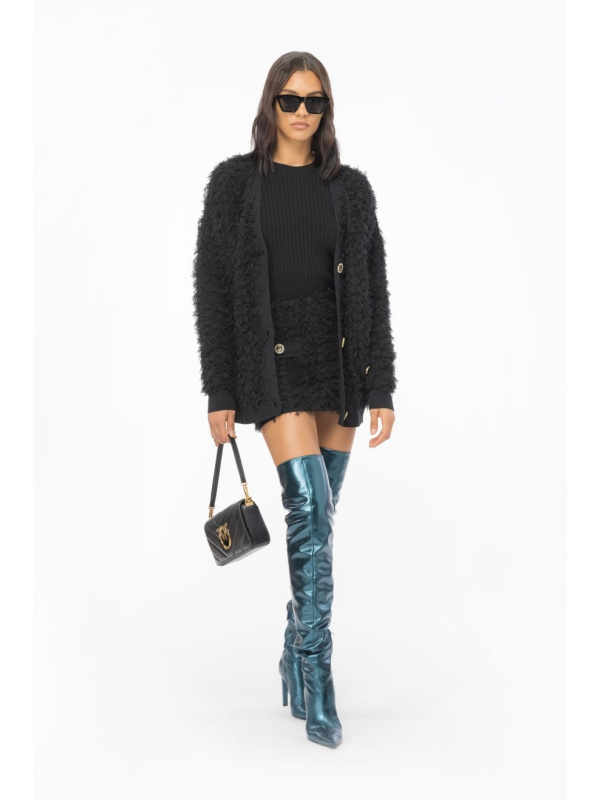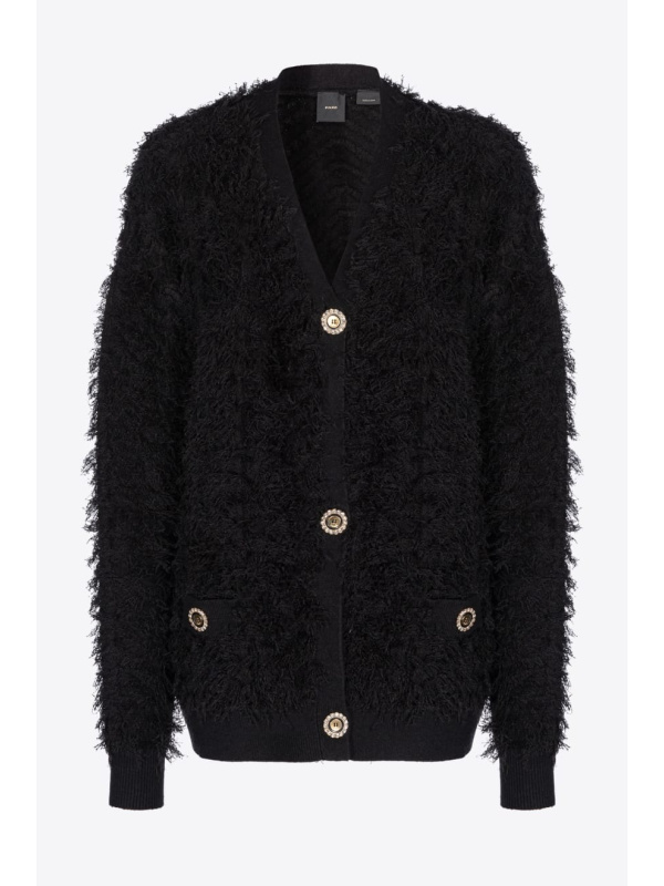 Crni PINKO Kardigan od meke, pletene tkanine od mješavine vune s lepršavom završnom obradom koja stvara blago izlizan učinak.