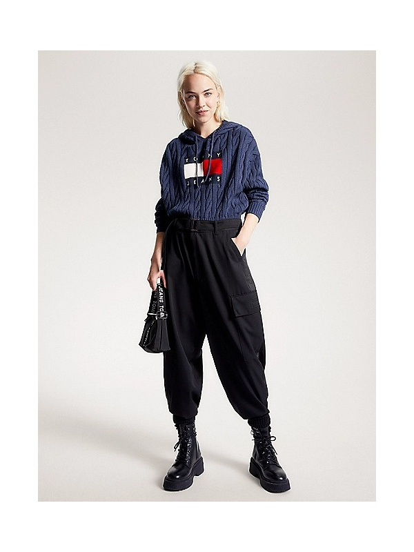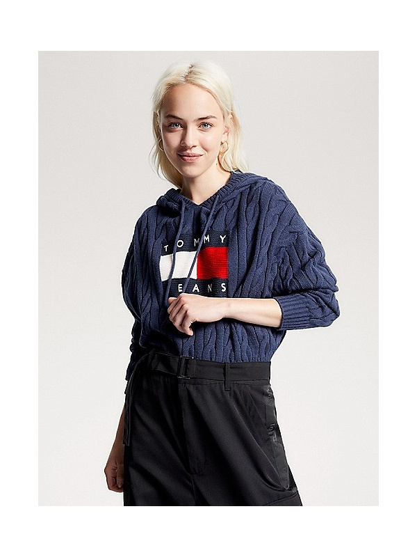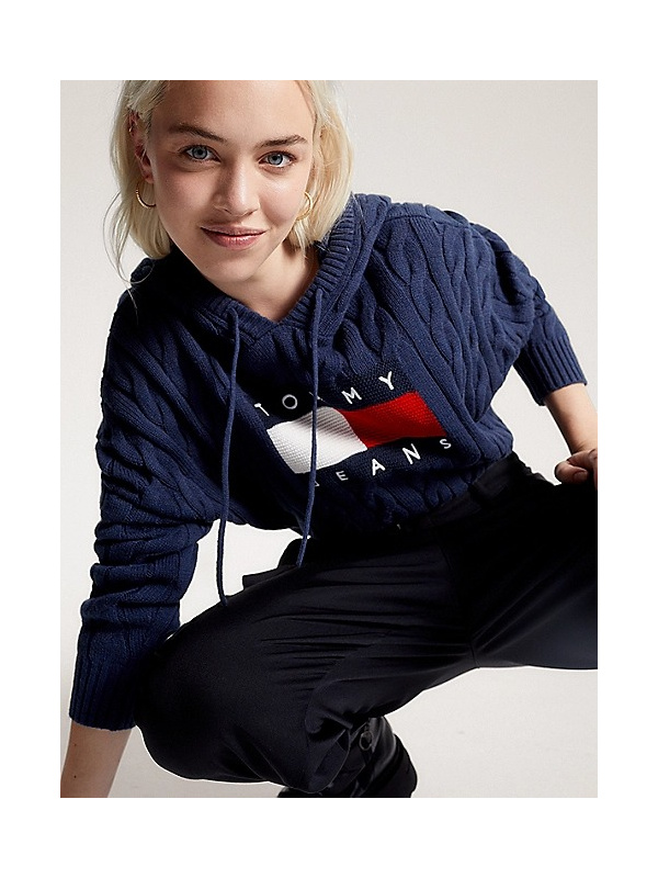 Zimski stil dobiva laku nadogradnju s ovom zdepastom pletenom majicom s kapuljačom, skraćenog kroja i upečatljivog bedža.