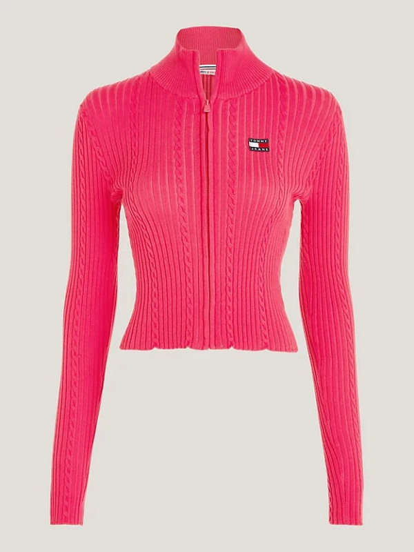 Ovaj rebrasti kardigan moderan je odabir za hladnije dane, zahvaljujući svom pripijenom obliku i modernoj prednjici s patentnim zatvaračem.