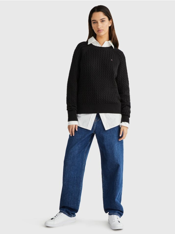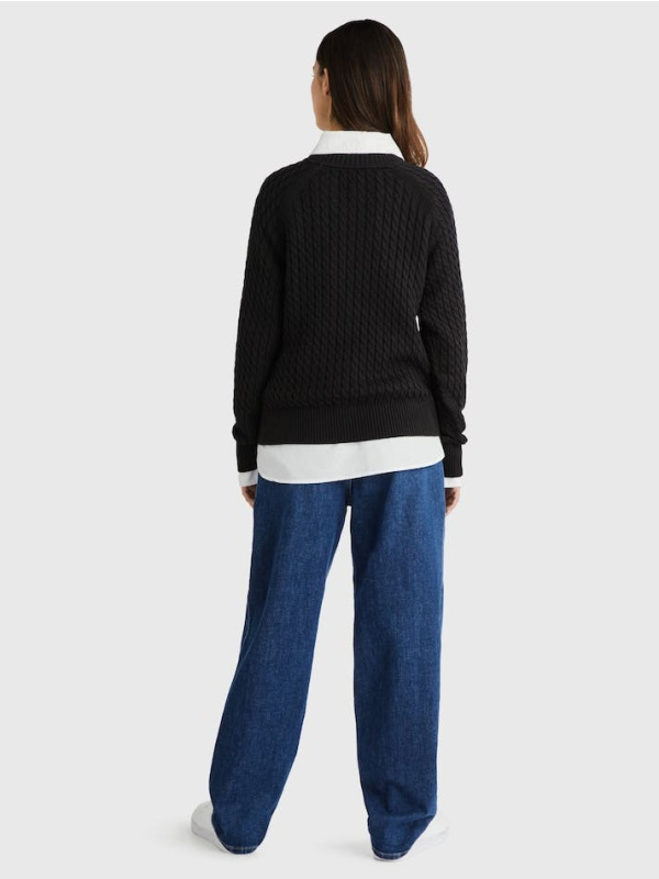 Ovaj džemper kombinira mornarske note i zimske note, zahvaljujući svojim velikim prugama i mini pletenom dizajnu.