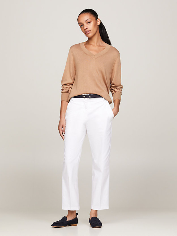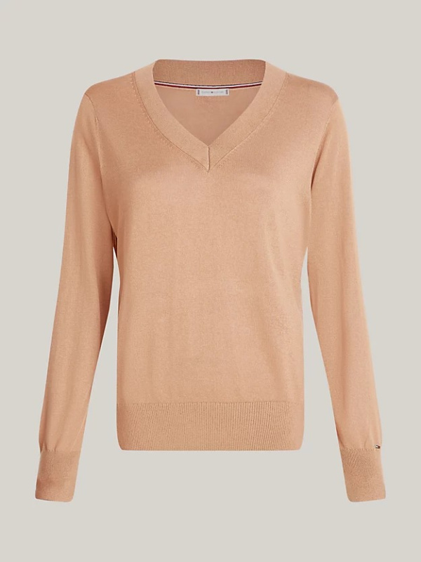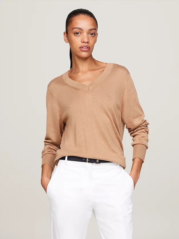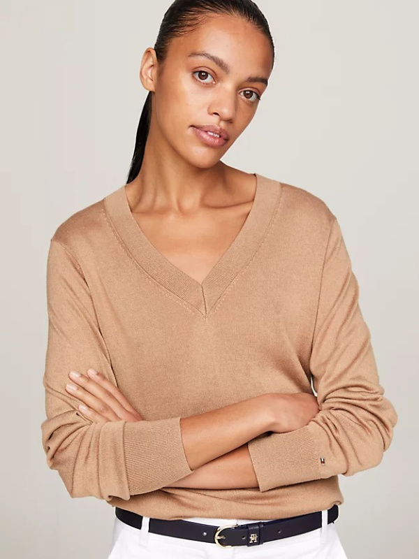 Vrhunska mješavina Tencel™ i svile daje mek i gladak osjećaj ovom elegantnom puloveru s V-izrezom.