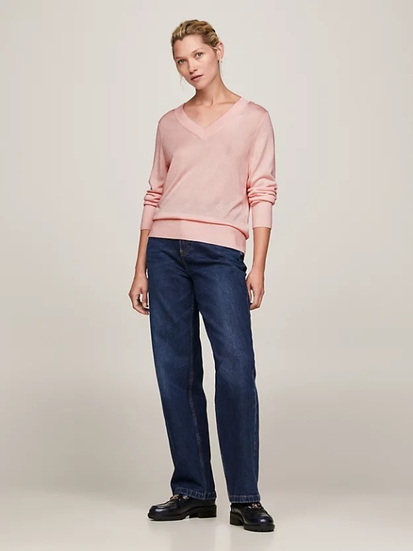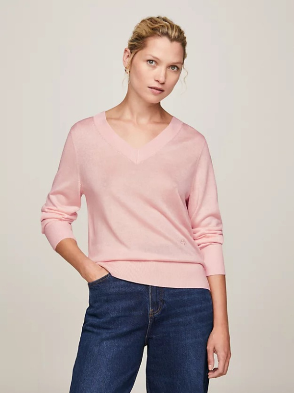 Vrhunska mješavina Tencel™ i svile daje mek i gladak osjećaj ovom elegantnom džemperu s V-izrezom.