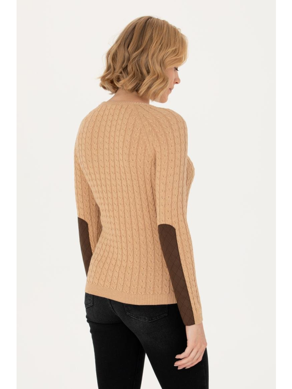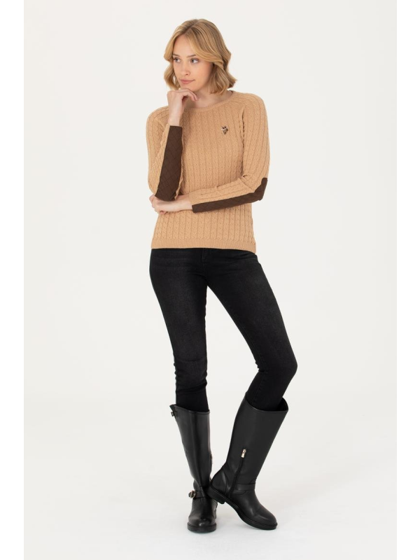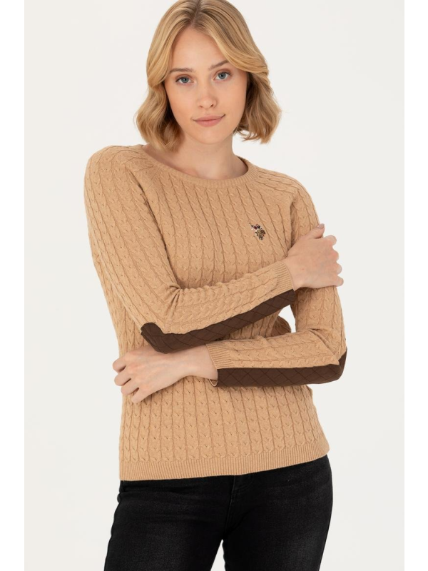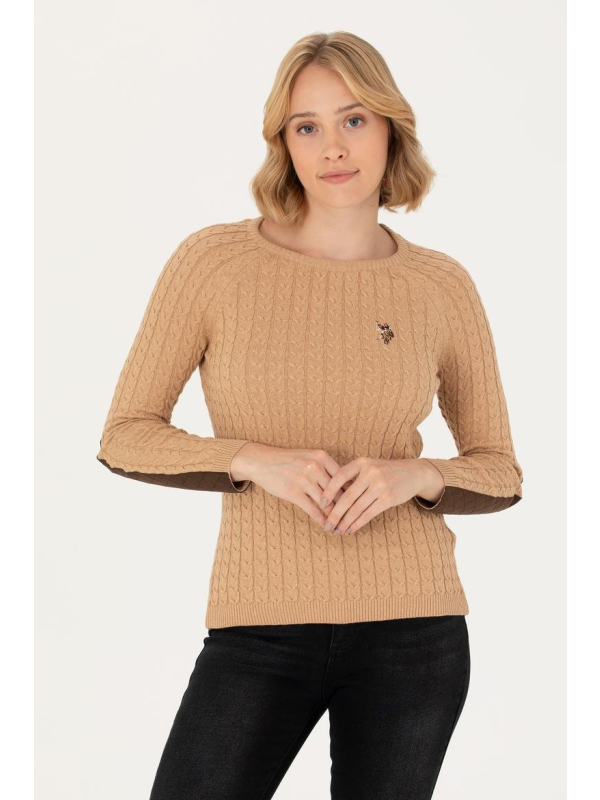Ženski U.S. POLO ASSN. pulover s okruglim izrezom od melanž boje pijeska