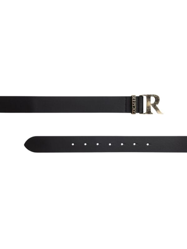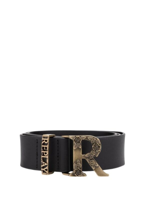 Ženski crni Replay remen sa zlatnom R logo kopčom koju krase ruže
