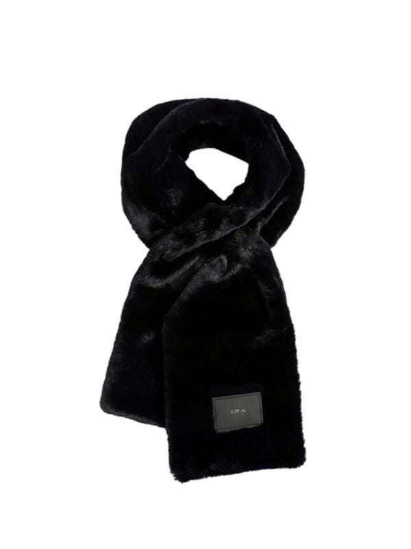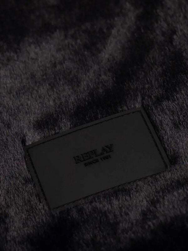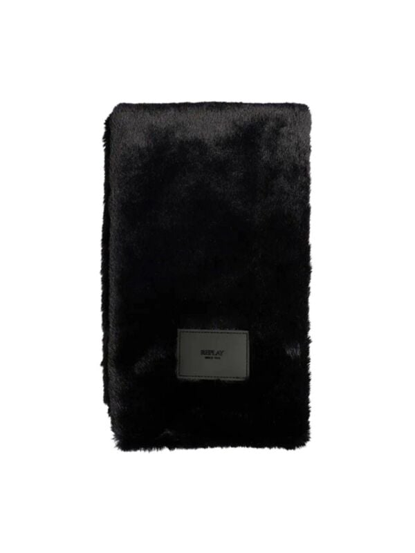 Ženski crni Replay šal od eko krzna s logo etiketom