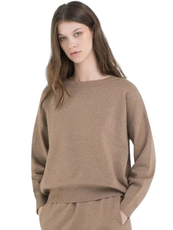 Ženski Replay camel smeđi pulover s okruglim izrezom