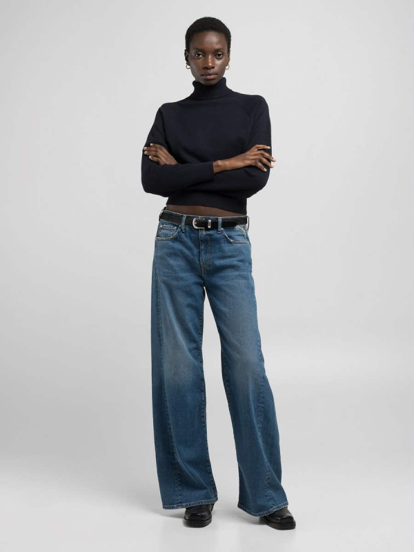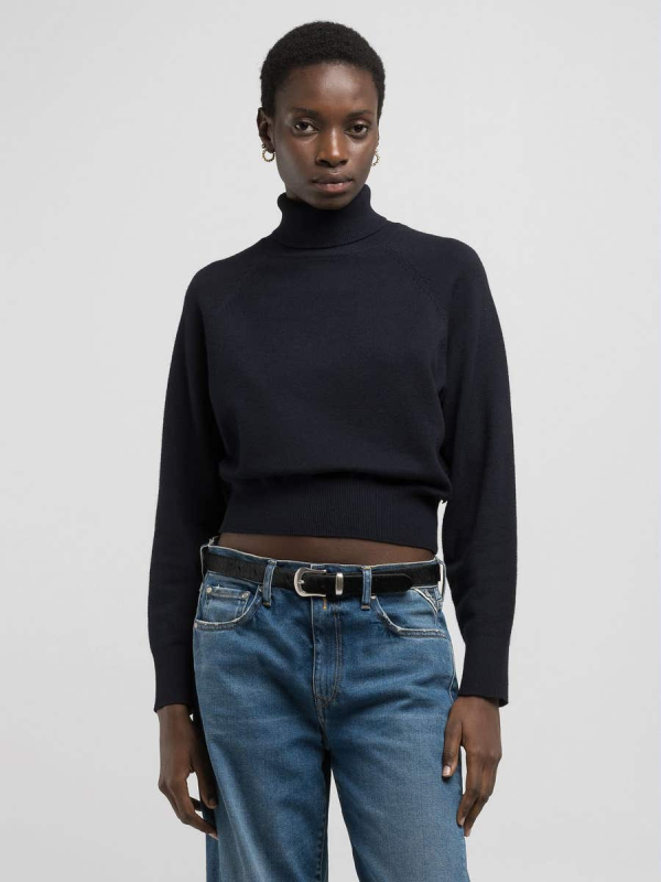 Ženski tamnoplavi Replay pulover s visokim ovratnikom