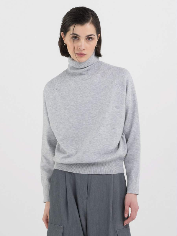 Ženski svijetlosivi Replay pulover s visokim ovratnikom