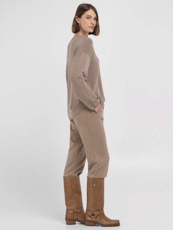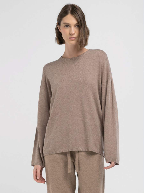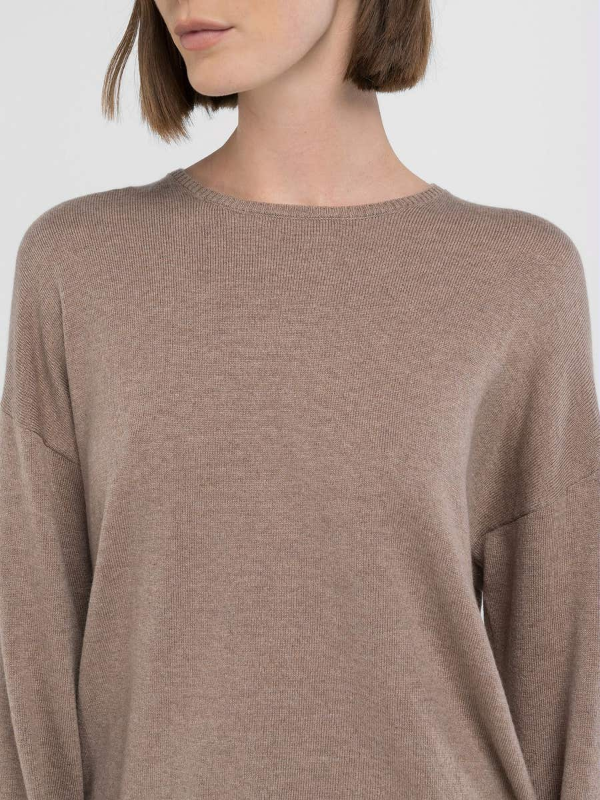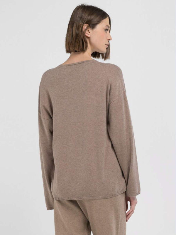 Ženski smeđi Replay pulover s okruglim izrezom od meke i udobne vunene mješavine kašmira