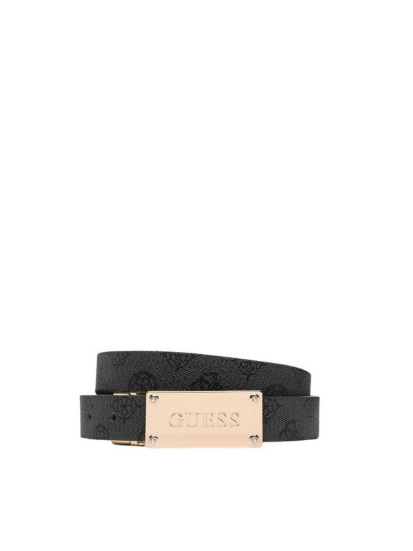 Guess Fynna ženski kaiš sa dva lica - crna boja i tamnosiva boja sa logo printom.