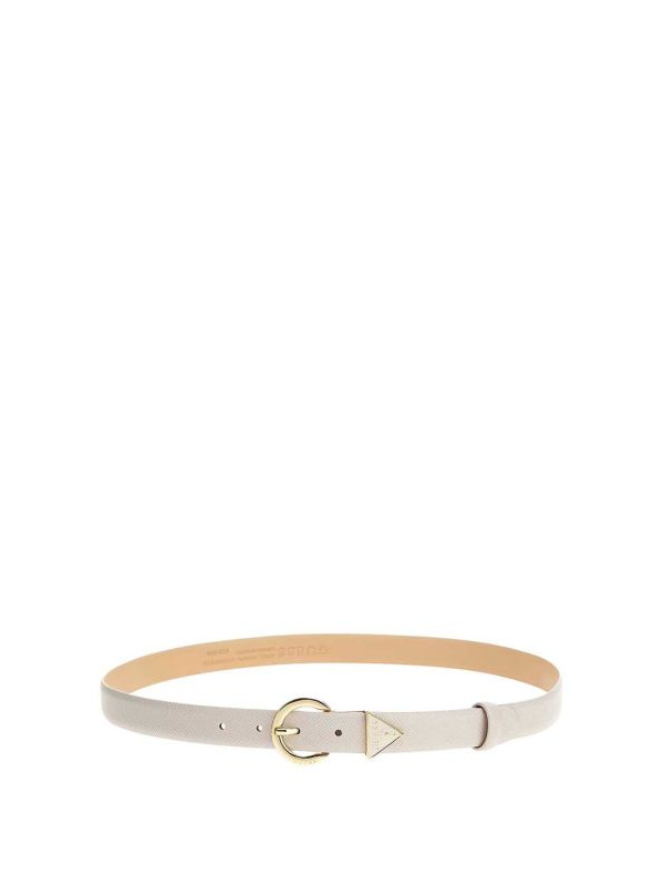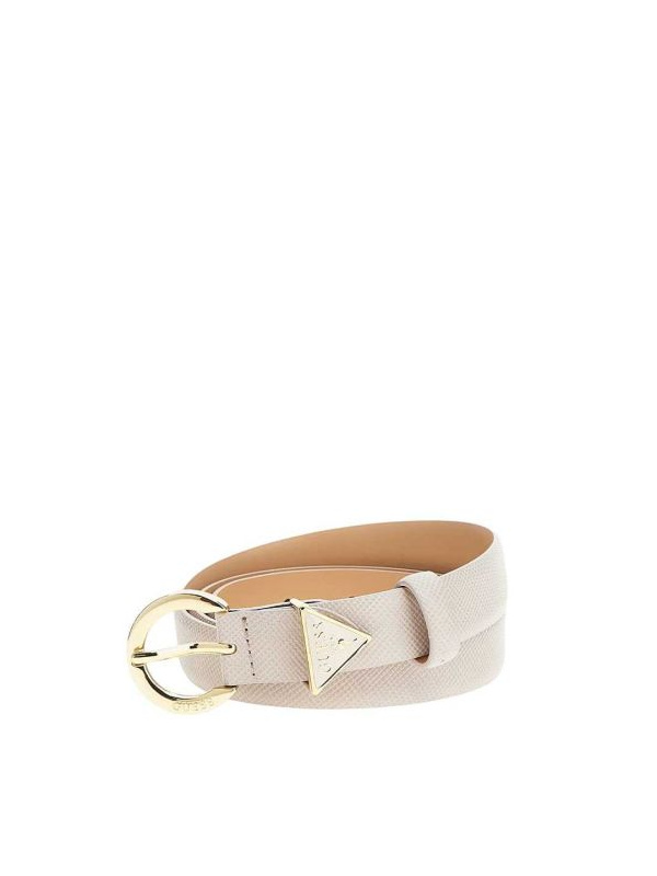 Guess bež-sivi ženski kaiš sa okruglom šnalom i trouglastim logo detaljem
