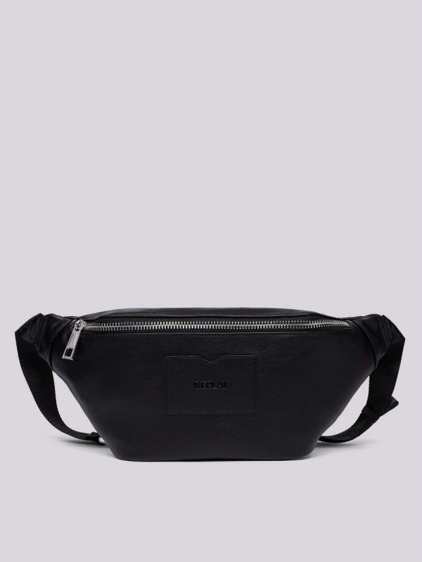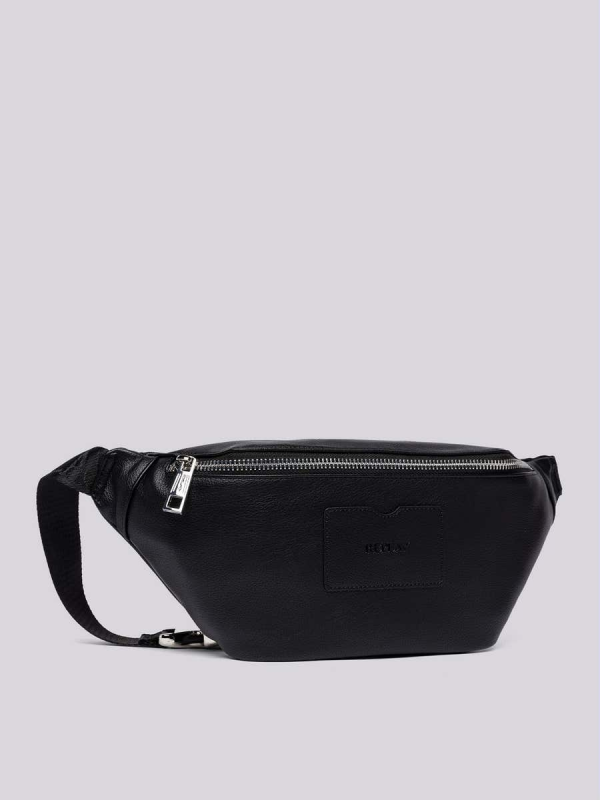 Jednobojna torba za pojas od recikliranog PU s efektom kovanog materijala s podesivim brendiranim trakastim remenom s kopčom na stražnjoj strani.