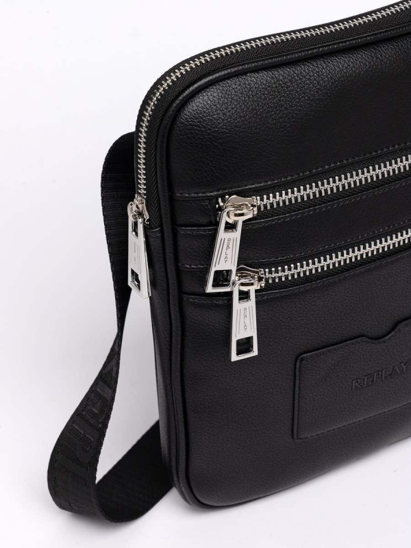 Muška crna crossbody Replay torba s 'hammered' efektom