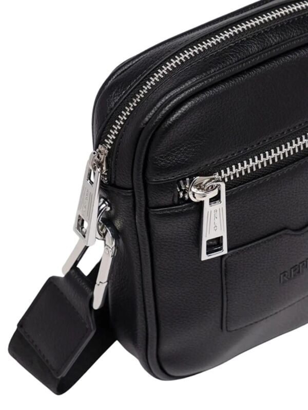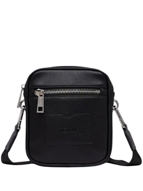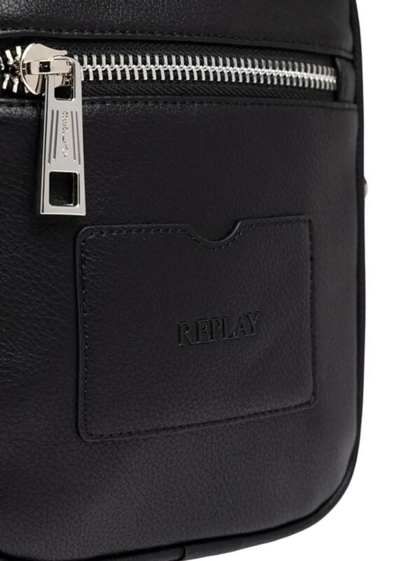 Muška crna Replay torba od eko kože sa zipom, remenom i logo znakom