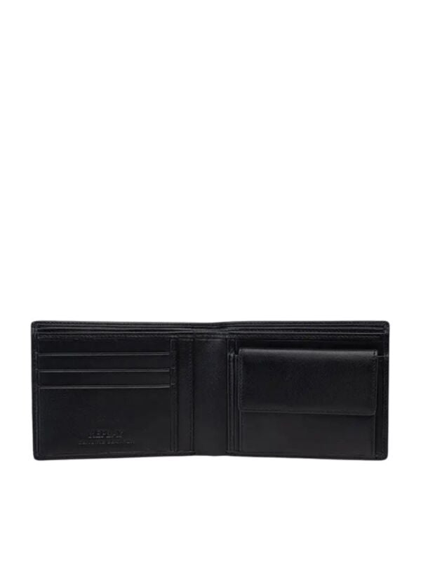 Muški crni Replay koni novčanik sa pregradama za kartice i metalni novac