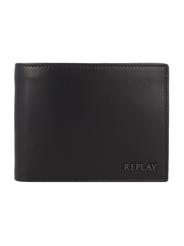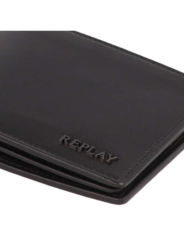 Muški crni kožni Replay novčanik s logom