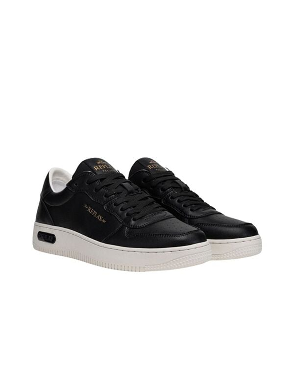Muške crne Replay kožne tenisice s logo detaljem i bijelim potplatom