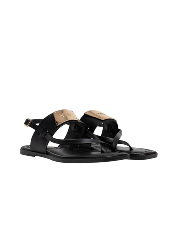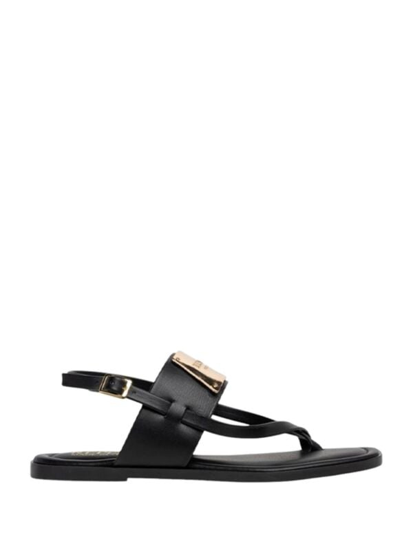 Ženske crne Replay ravne sandale sa zlatnim logo znakom