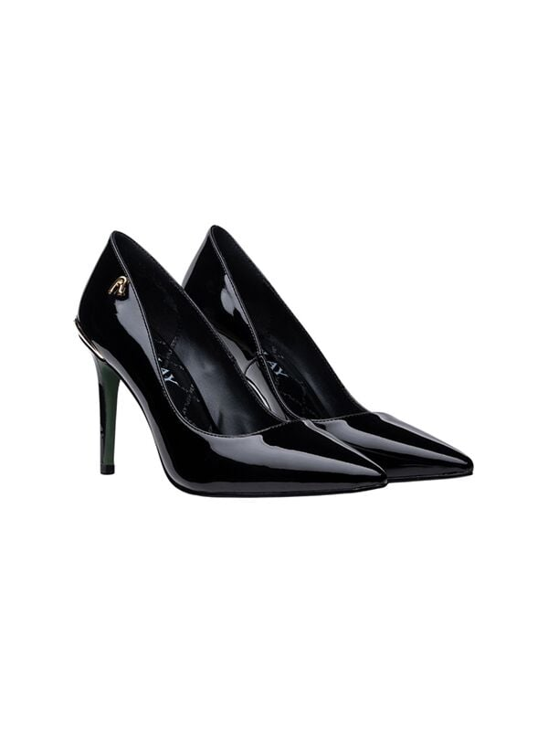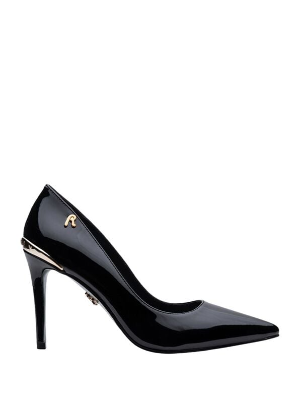 Ženske crne lakirane Replay salonke sa potpeticom i logo znakom