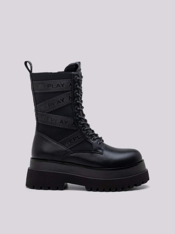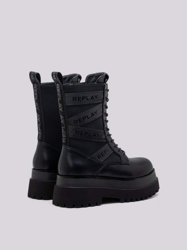 Ženske crne Replay 'borbene' čizme an pruge s brendiranim umetcima
