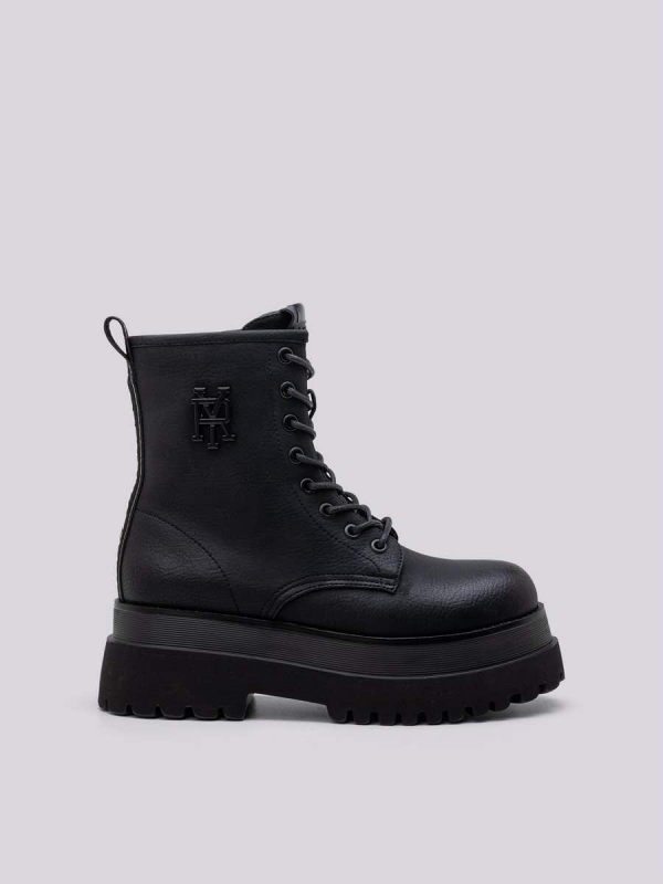 "Borbene" čizme s mekim PU gornjištem s utisnutim RY monogramom sa strane.