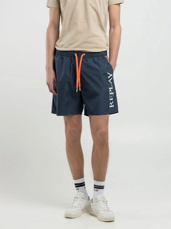 Kupaće hlače od udobne reciklirane tkanine za plažu, održivijeg materijala za ekološki prihvatljiviji izbor. Ovaj model ima rastezljivi pojas s podesivim vezicom, dva praktična bočna džepa i džep s patentnim zatvaračem s oznakom brenda na stražnjoj strani. Kontrastni natpis Replay na nogavici upotpunjuje dizajn.