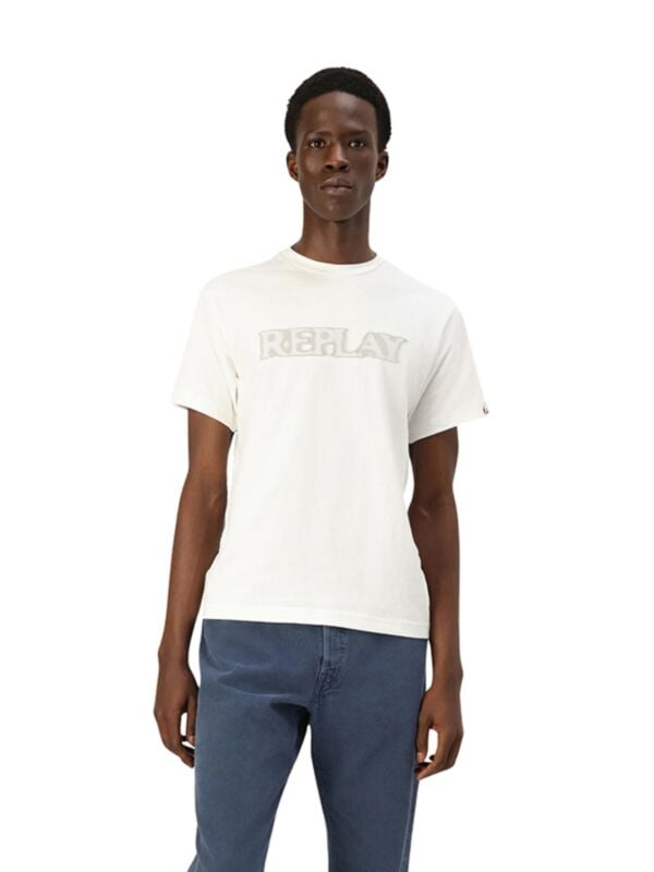 Muška bijela Replay majica kratkih rukava s logom s blur efektom