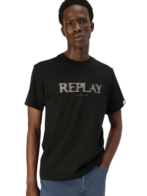 Muška crna Replay majica kratkih rukava s logom s blur efektom