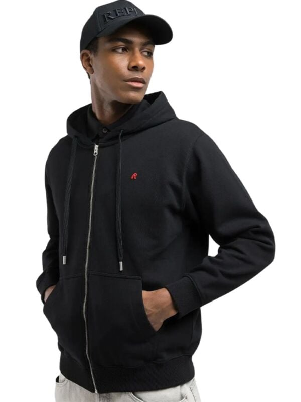 Muška crna Replay dukserica s kapuljačom i patetnim zatvaračem