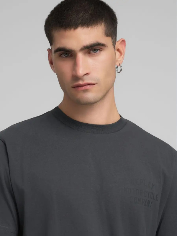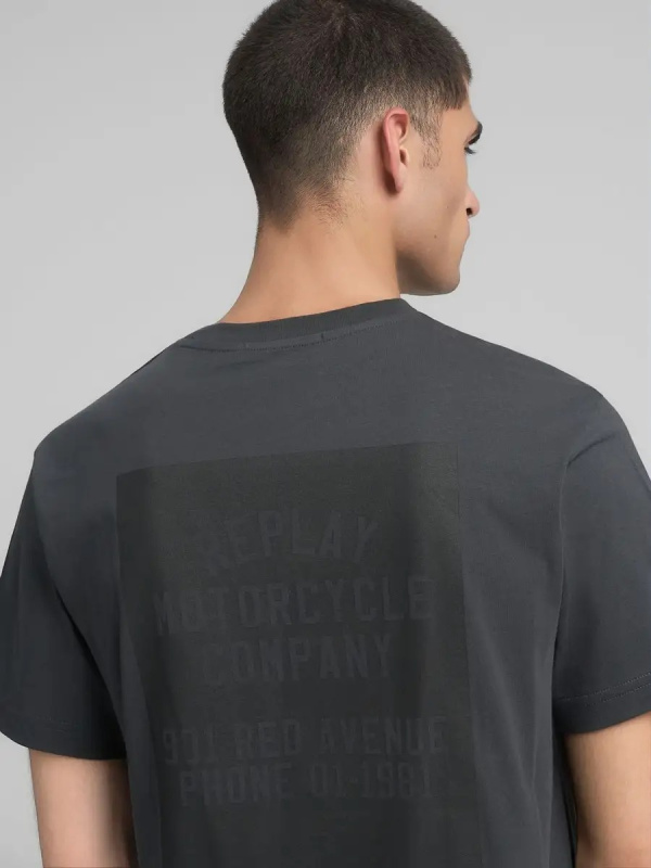 Muška tamnosiva Replay majica kratkih rukava s printom na leđima i prsima