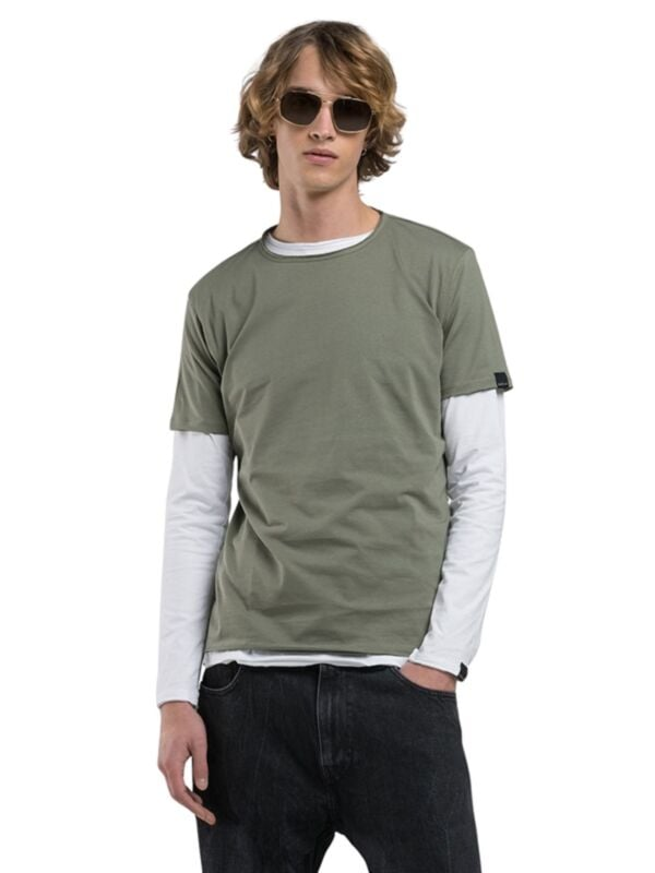 Muška maslinasto zelena Replay majica kratkih rukava s logo etiketom