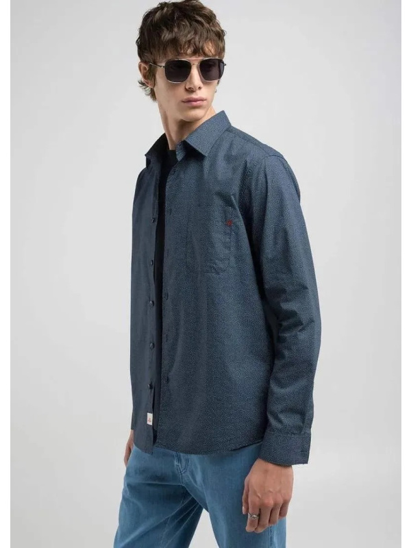 Muška tamnoplava Replay košulja dugih rukava s dezenom