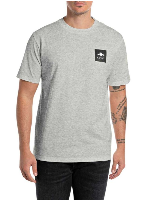 Muška svijetlosiva Replay majica kratkih rukava sa crnom logo aplikacijom