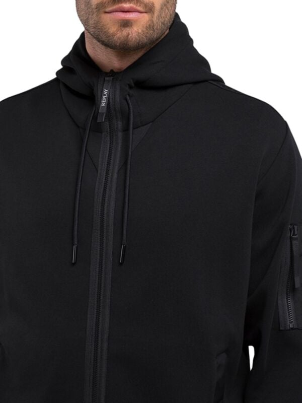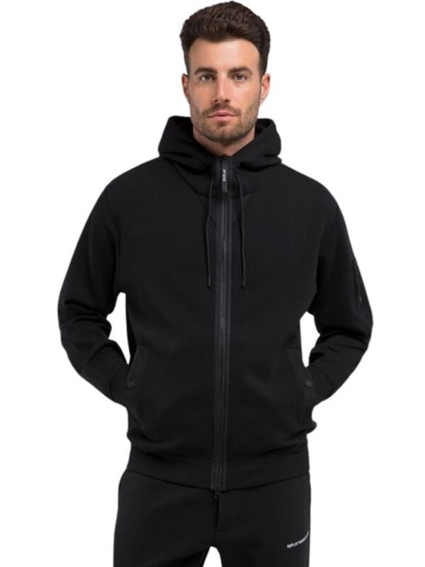 Muška crna Replay dukserica s kapuljačom i zipom