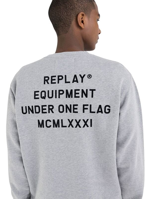 Muška svijetlosiva pamučna Replay dukserica s printom na leđima
