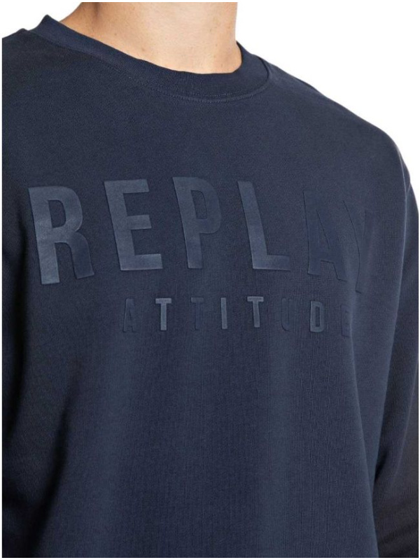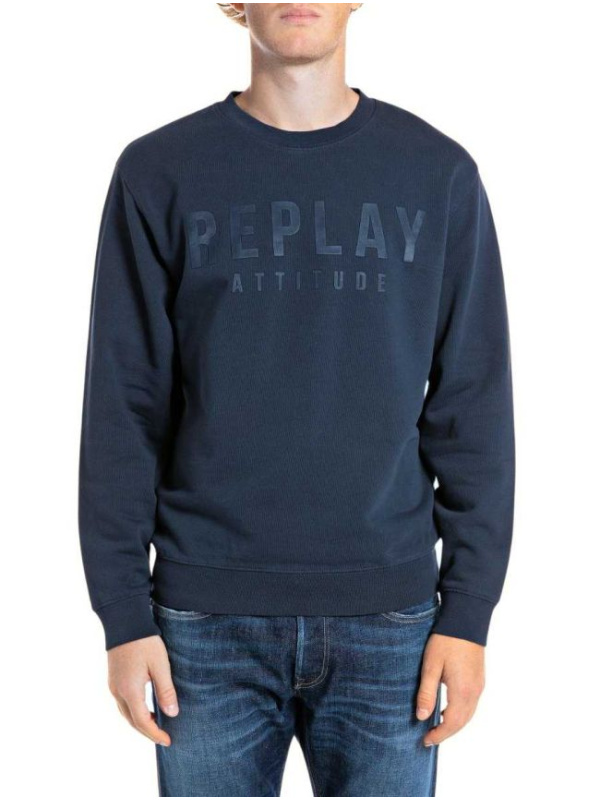 Muški tegetplavi Replay duks sa logo printom na prsima