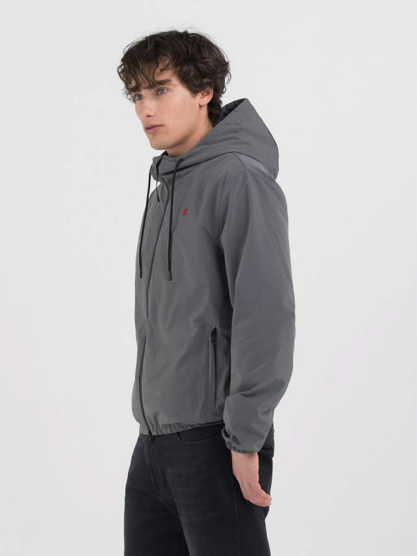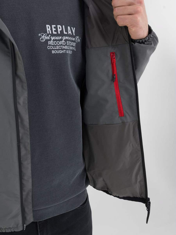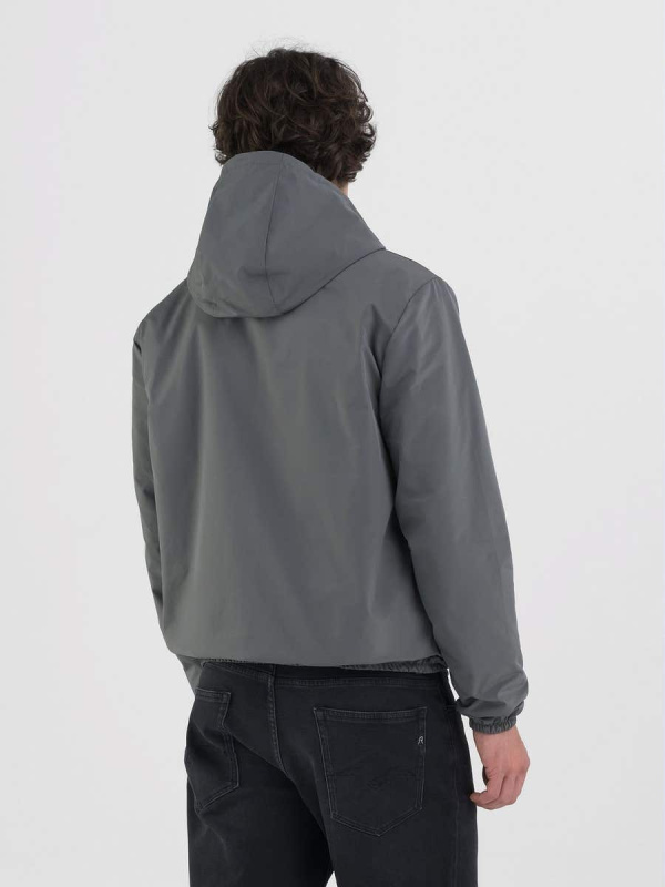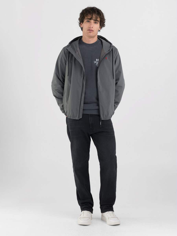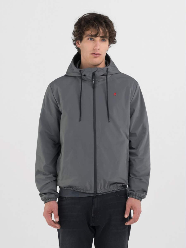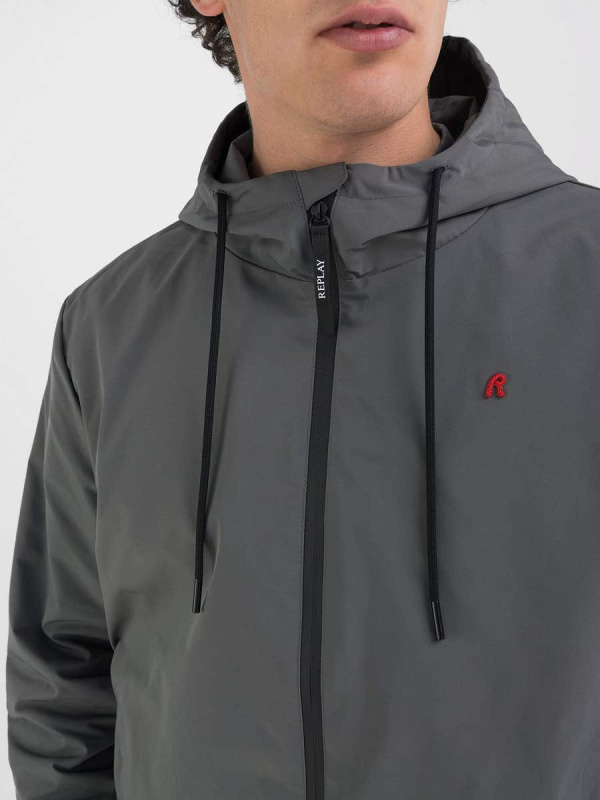 Muška siva Replay jakna s kapuljačom i malim kultnim R logom