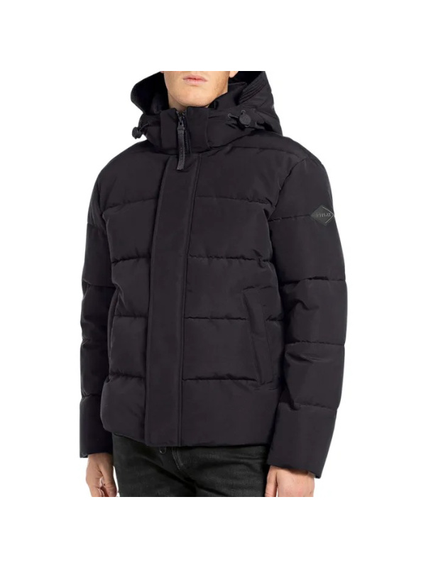 Muška crna prošivena Replay jakna s kapuljačom