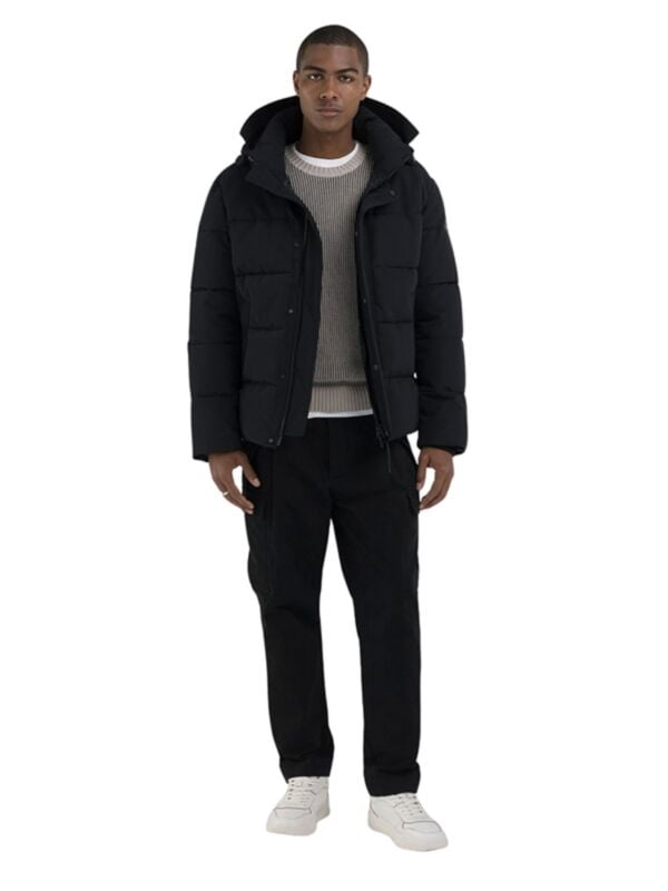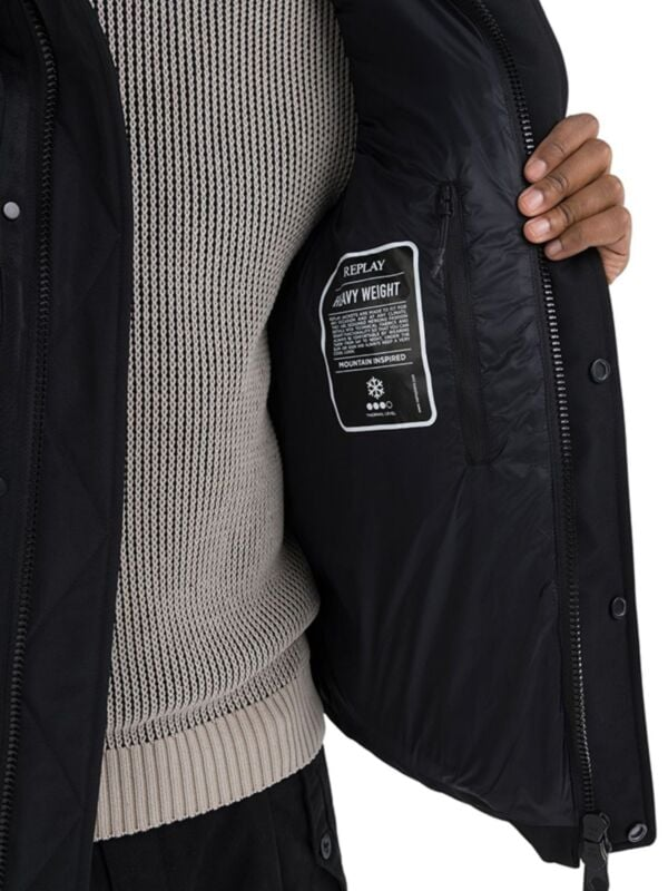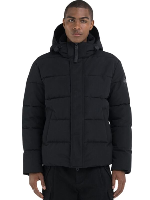 Muška crna prošivena Replay jakna sa kapuljačom i zip kopčanjem