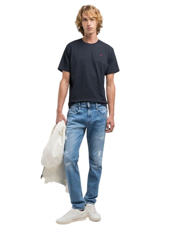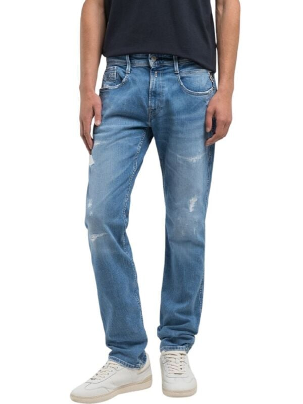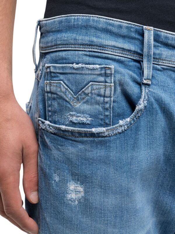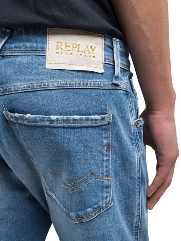 Muške svijetloplave Replay Anbass farmerke iz 573 Eco Plus kolekcije u kojoj se ne koriste kemijski tretmani