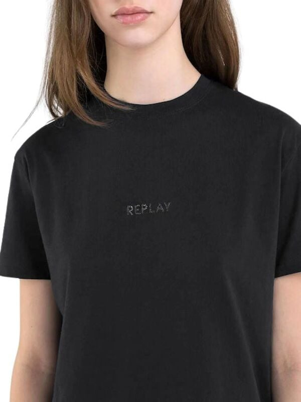Ženska pamučna crna Replay majica kratkih rukava s logom na prsima