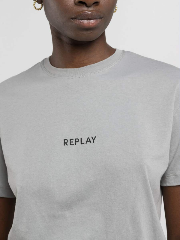 Ženska svijetlosiva Replay majica kratkih rukava s logom na prsima