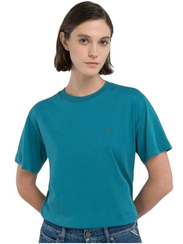 Ženska pamučna plavozelena Replay majica kratkih rukava s malim R logom