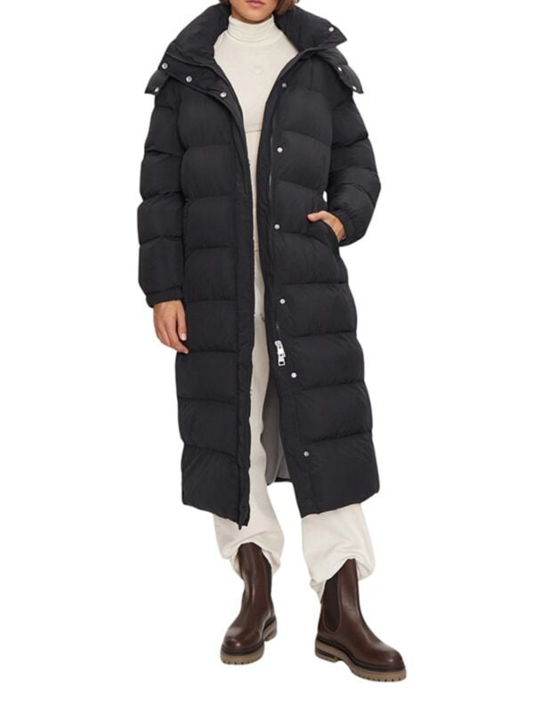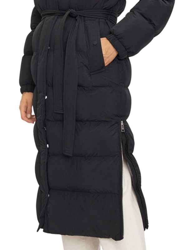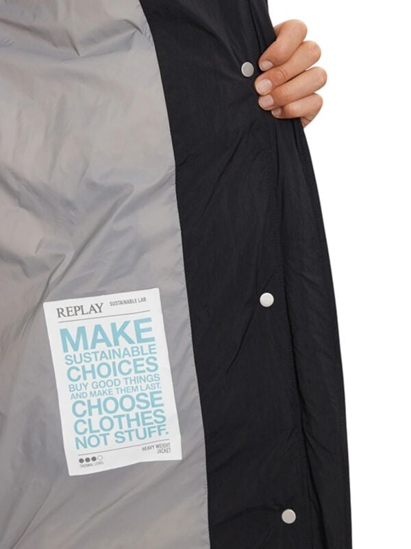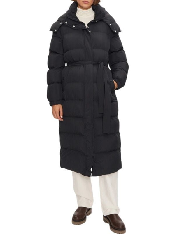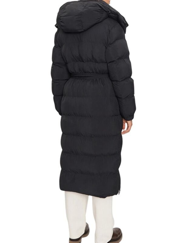 Ženska crna dugačka Replay jakna s kapuljačom i istobojnim remenom