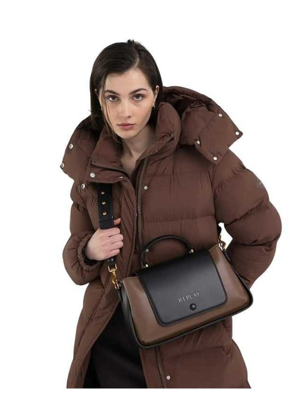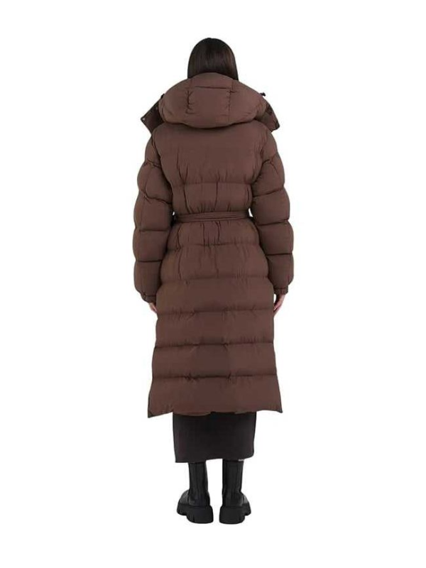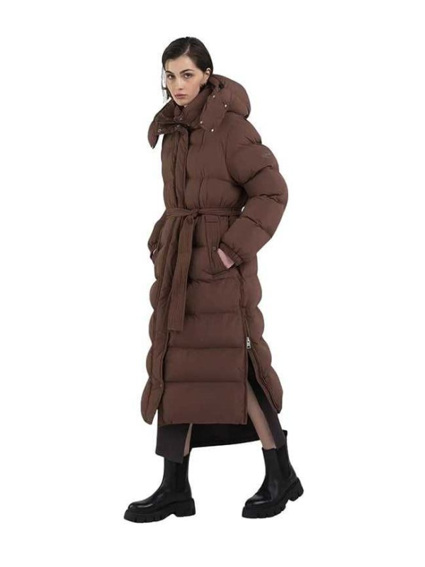 Ženska smeđa dugačka Replay jakna s kapuljačom i istobojnim remenom