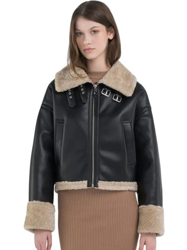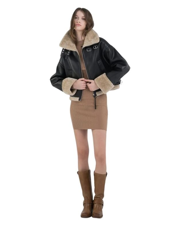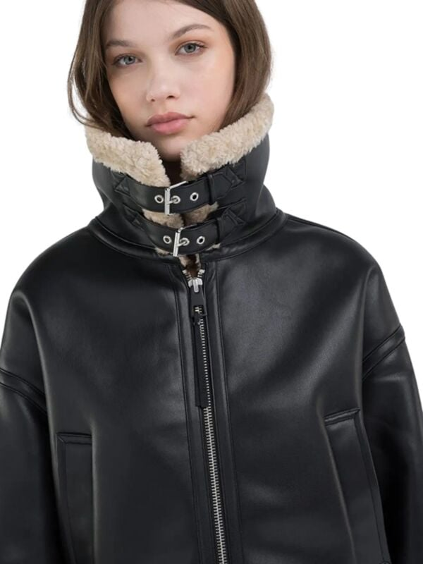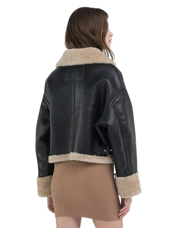 Ženska crna Replay jakna od eko kože sa teddy detaljima