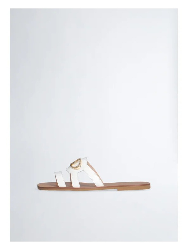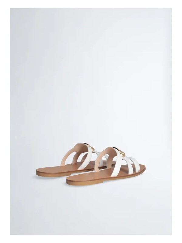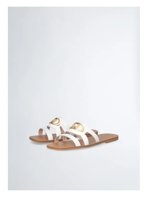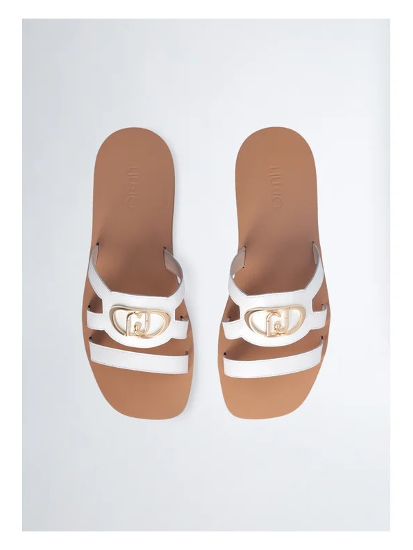 Ženske bijele Liu Jo sandale s logo kopčom i smeđim potplatom