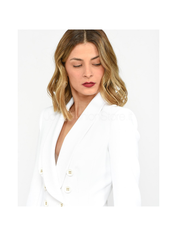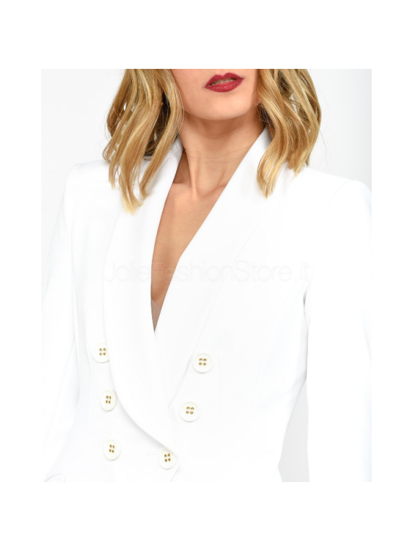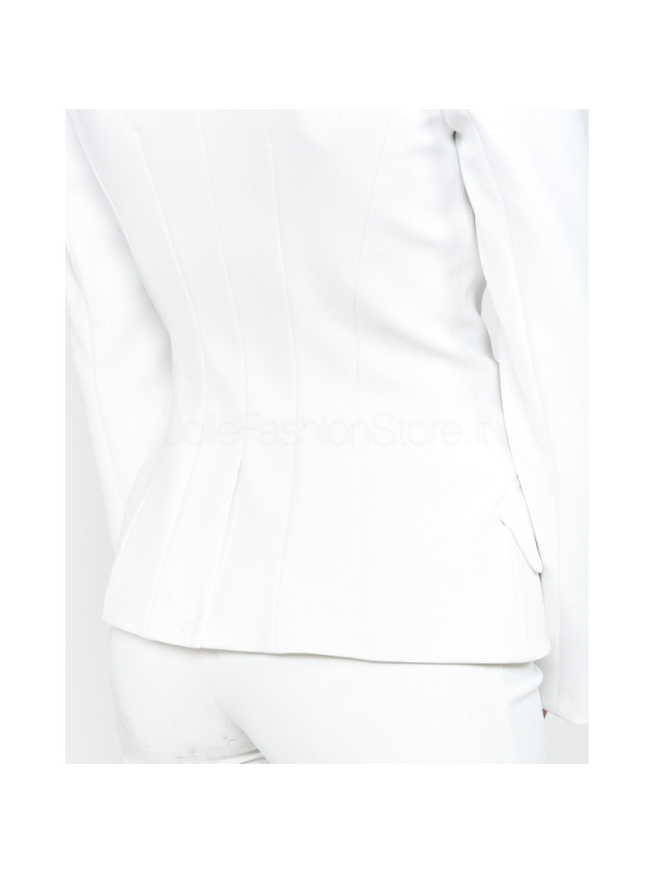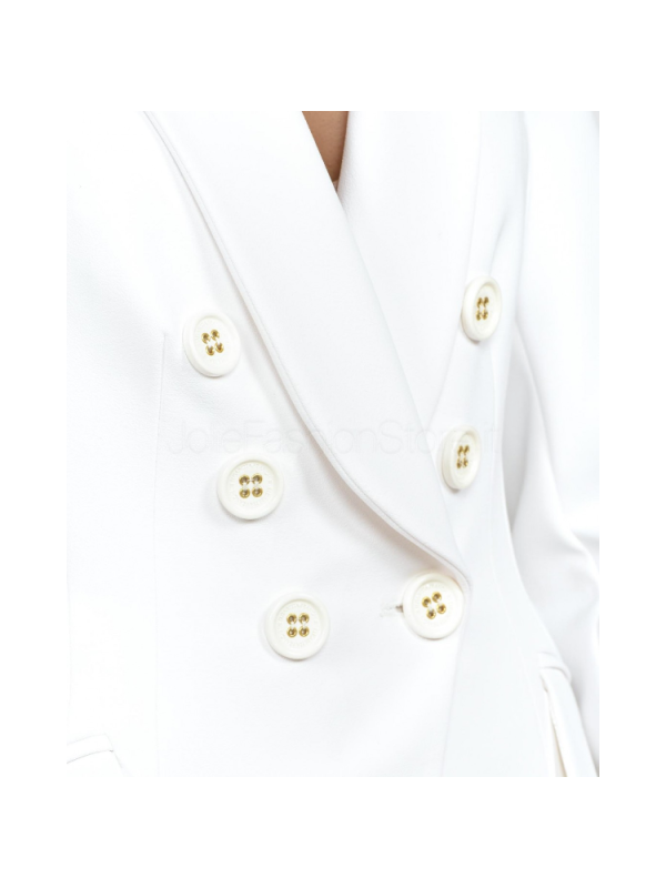 Ženski ELISABETTA FRANCHI sako s dvorednim kopčanjem od dvostrukog krepa s prednjim džepovima s preklopom i rubom. Karakteriziraju ga šal reveri.