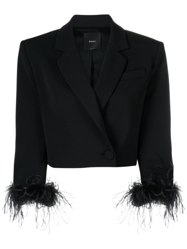 Ženski skraćeni PINKO blazer s perjem
